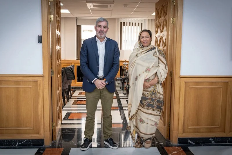 جرى اليوم السبت 23 دجنبر 2023, بجزر الكناري, مباحثات ثنائية بين فرناندو كلافيخو، رئيس حكومة جزر الكناري، و فتيحة الكموري، قنصل المملكة بالجزر ذاتها، تمحورت حول نقاش سبل تطوير الخط البحري الرابط بين طرفاية وفويرتي بينتورا.