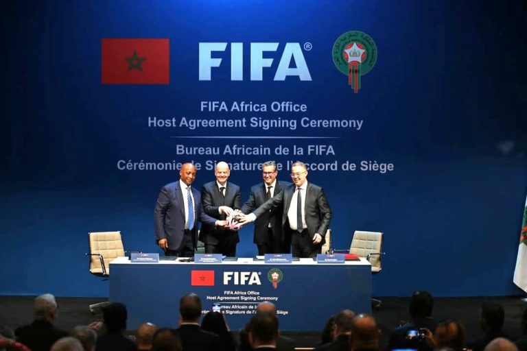 جرت مساء اليوم الاثنين بمراكش ، مراسيم التوقيع على افتتاح المقر الافريقي للإتحاد الدولي لكرة القدم “فيفا” بالمغرب.