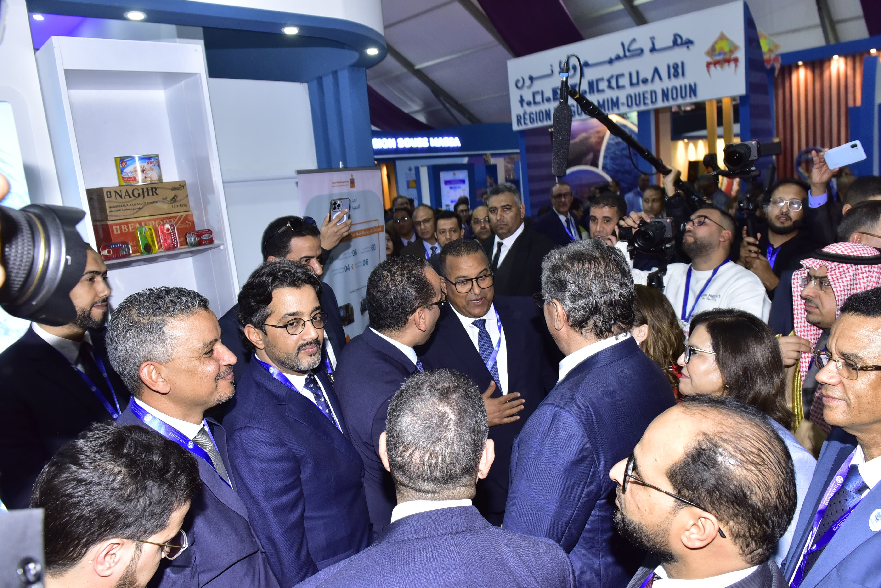 شهدت فعاليات افتتاح المعرض زيارة رئيس الحكومة، السيد عزيز أخنوش، لعدد من أروقة جهات المملكة، حيث حظي رواق جهة العيون الساقية الحمراء باهتمام خاص. حيث استقبله السيد بلاهي أباد، النائب الأول لرئيس مجلس الجهة، في لقاء أكد في مستهل كلمته على أهمية الجهة كمركز استثماري بحري، مشيرًا إلى الجهود المبذولة لتحسين مناخ الأعمال وتوفير التسهيلات اللازمة للمستثمرين. كما أبرز أن الجهة تعمل على تطوير شراكات استراتيجية مع القطاع الخاص لتعزيز الاستثمار في مجالات الصيد البحري والصناعات المرتبطة به، بما في ذلك تربية الأحياء المائية وتصنيع المنتجات البحرية.