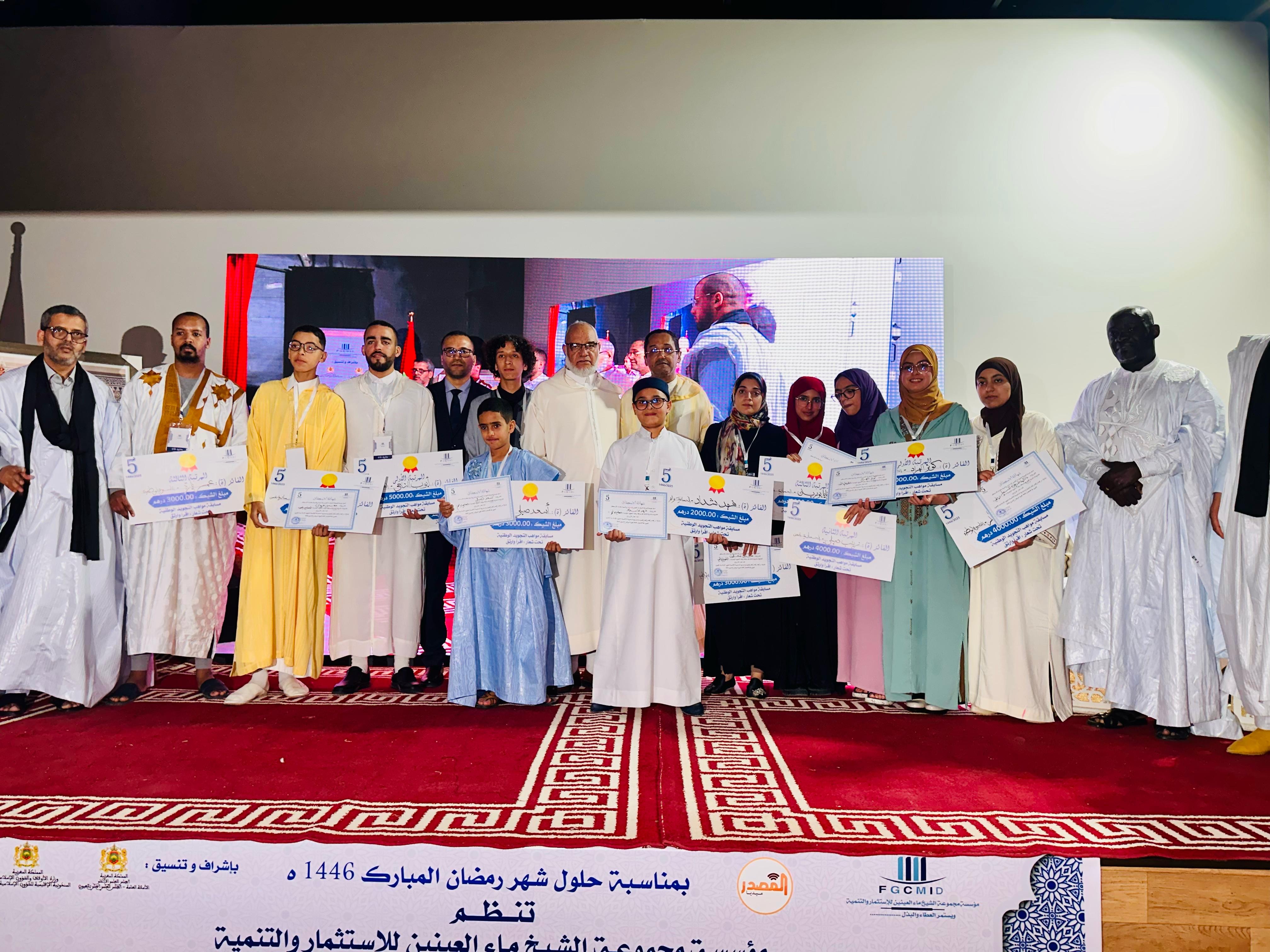 احتضنت قاعة العروض التابعة للمديرية الجهوية للثقافة بالعيون، في أجواء روحانية مميزة، فعاليات النسخة الخامسة من مسابقة مواهب التجويد الوطنية، التي نظمتها مجموعة الشيخ ماء العينين الاستثمارية للتنمية، وذلك احتفاءً بحلول شهر رمضان المبارك 1446هـ.