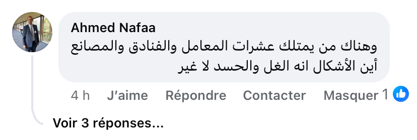 “وهناك من يمتلك عشرات المعامل والفنادق والمصانع، أين الإشكال؟ إنه الغل والحسد لا غير.”