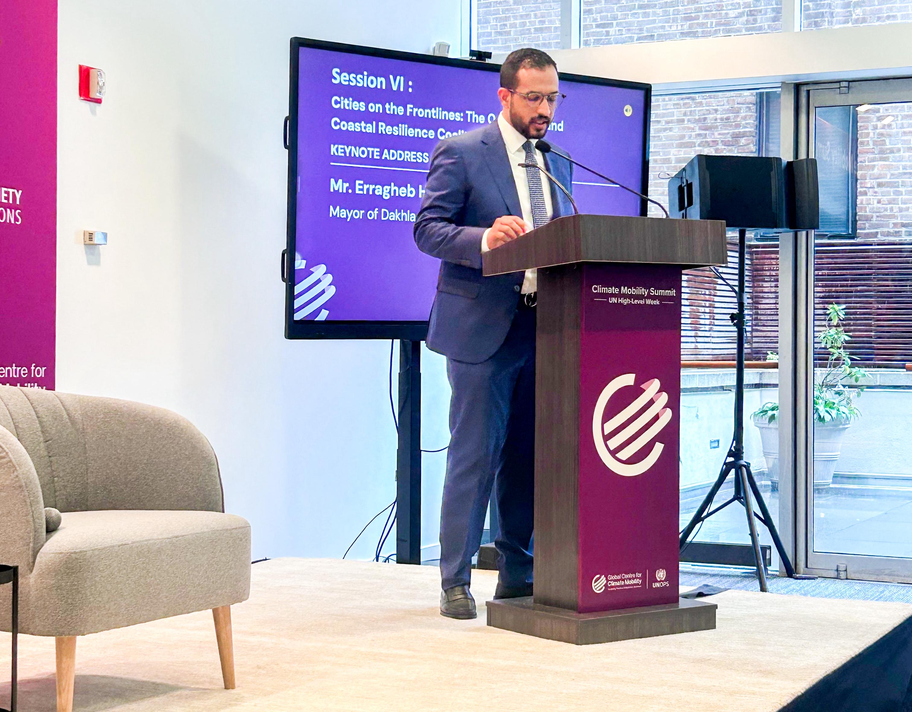 وخلال الجلسة السادسة للقمة، المنظمة يوم الخميس 25 شتنبر تحت شعار “المدن في الخطوط الأمامية.. صمود السواحل وارتفاع منسوب مياه المحيطات”، كان للراغب حرمة الله حضور بارز حيث عرض التحديات الكبرى التي تواجهها المدن الساحلية جراء التغيرات المناخية، مستعرضاً تجربة الداخلة كنموذج متقدم لمدينة توجد في صلب مواجهة هذه الظواهر.