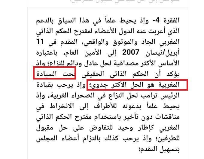 كما لفتت المسودة إلى دعم عدد من الدول الأعضاء داخل مجلس الأمن لهذا الطرح، مؤكدة أن مبادرة المغرب تتماشى مع متطلبات الاستقرار الإقليمي وتخدم جهود التنمية والسلام في شمال إفريقيا.