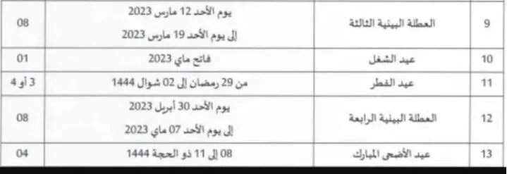 وانطلاقا من 30 أبريل 2023 سيستريح التلاميذ والطلبة وأطر التدريس مُجدّداً في إطار العطلة البينية الرّابعة.